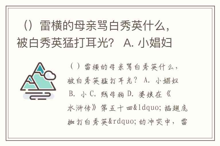 ()雷横的母亲骂白秀英什么,被白秀英猛打耳光? A. 小娼妇 B. 小 C. 贱母狗 D. 婆娘