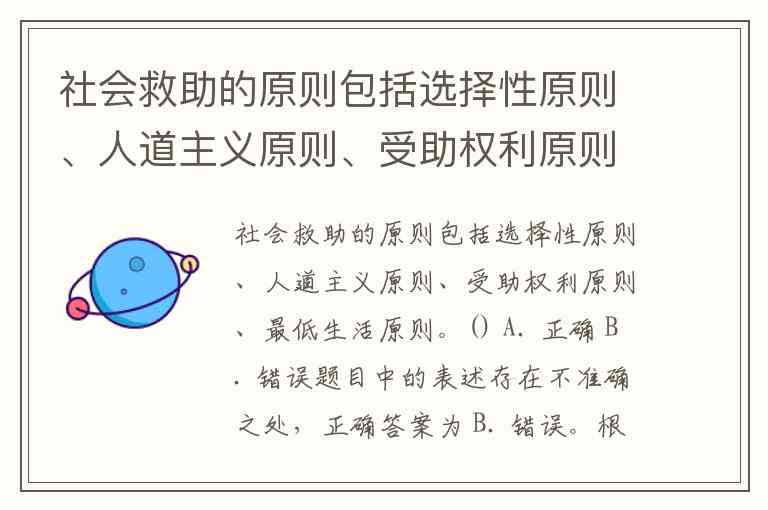综上,题目对社会救助原则的表述与现行法律规定不符,存在概念混淆和术语不规范问题。