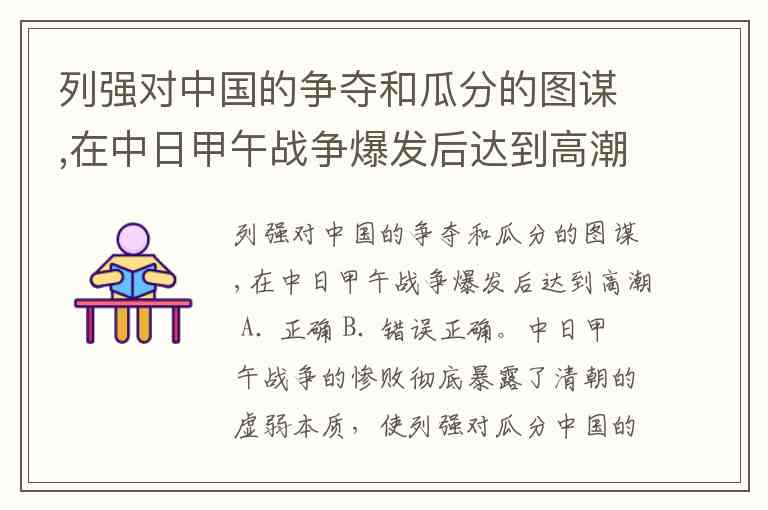 列强对中国的争夺和瓜分的图谋,在中日甲午战争爆发后达到高潮 A. 正确 B. 错误