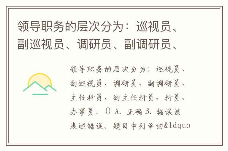 领导职务的层次分为:巡视员、副巡视员、调研员、副调研员、主任科员、副主任科员,科员、办事员。() A. 正确 B. 错误