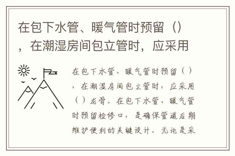 在包下水管、暖气管时预留(),在潮湿房间包立管时,应采用()龙骨。