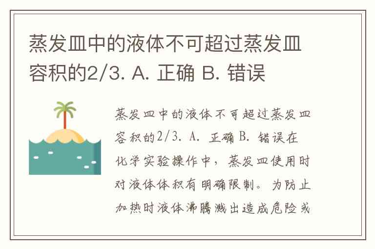 蒸发皿中的液体不可超过蒸发皿容积的2/3. A. 正确 B. 错误
