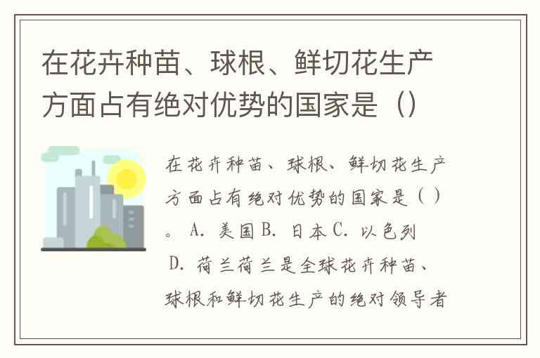 在花卉种苗、球根、鲜切花生产方面占有绝对优势的国家是()。 A. 美国 B. 日本 C. 以色列 D. 荷兰