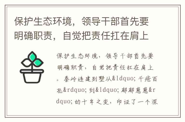 保护生态环境,领导干部首先要明确职责,自觉把责任扛在肩上。