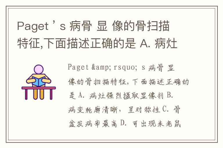 Paget ’ s 病骨 显 像的骨扫描特征,下面描述正确的是 A. 病灶强烈摄取显像剂 B. 病变轮廓清晰,呈对称性 C. 骨盆发病率最高 D. 可出现米老鼠征