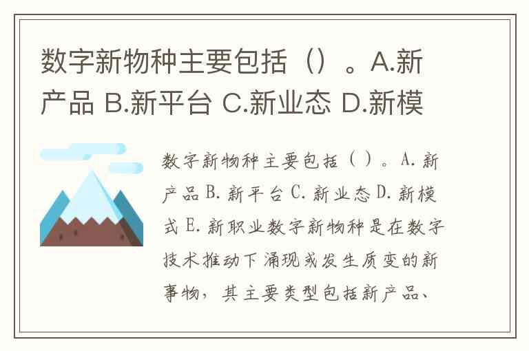 数字新物种主要包括()。A.新产品 B.新平台 C.新业态 D.新模式 E.新职业