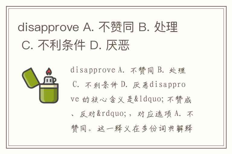disapprove A. 不赞同 B. 处理 C. 不利条件 D. 厌恶