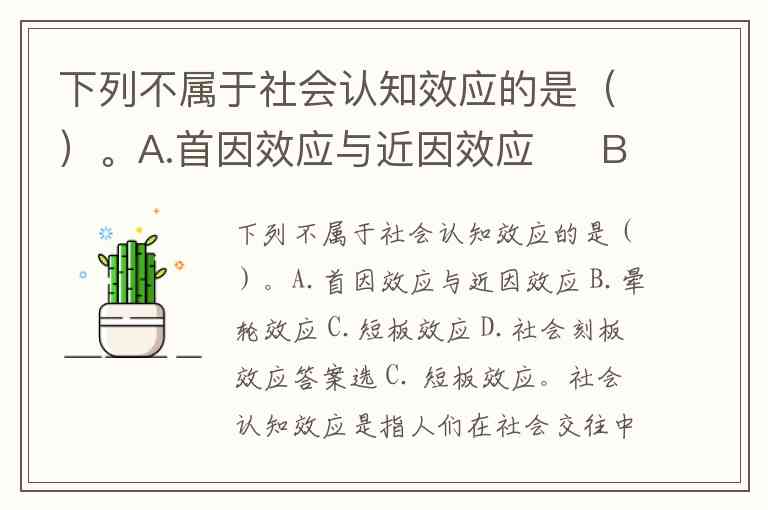 下列不属于社会认知效应的是()。A.首因效应与近因效应 B.晕轮效应 C.短板效应 D.社会刻板效应