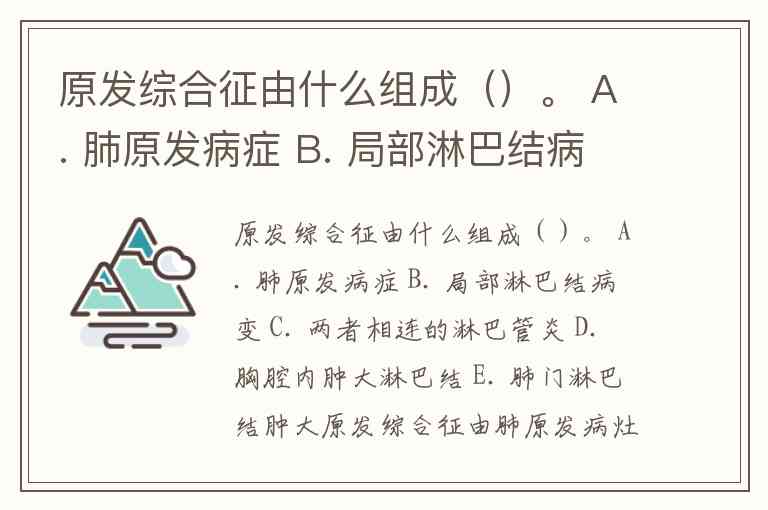 原发综合征由什么组成()。 A. 肺原发病症 B. 局部淋巴结病变 C. 两者相连的淋巴管炎 D. 胸腔内肿大淋巴结 E. 肺门淋巴结肿大