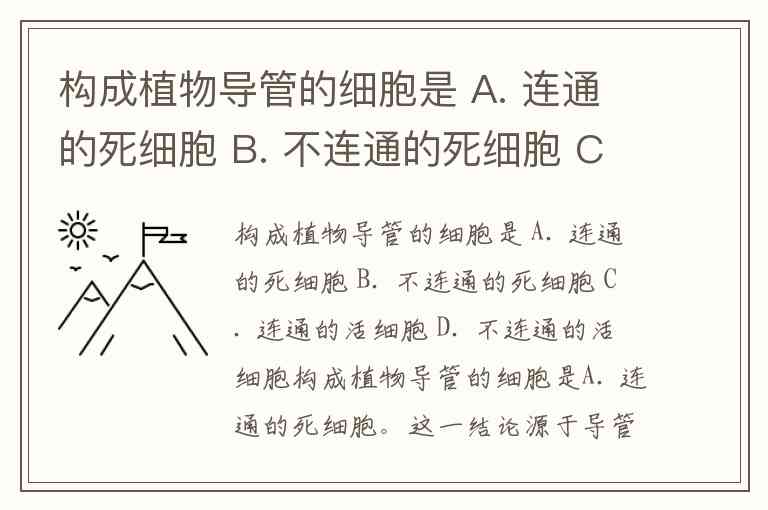 构成植物导管的细胞是 A. 连通的死细胞 B. 不连通的死细胞 C. 连通的活细胞 D. 不连通的活细胞