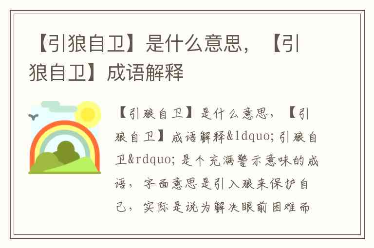 【引狼自卫】是什么意思,【引狼自卫】成语解释