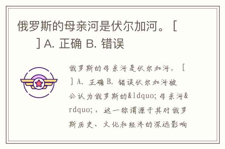 俄罗斯的母亲河是伏尔加河。 [ ] A. 正确 B. 错误