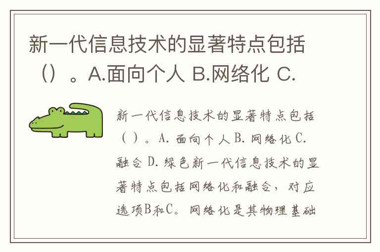 新一代信息技术的显著特点包括()。A.面向个人 B.网络化 C.融合 D.绿色