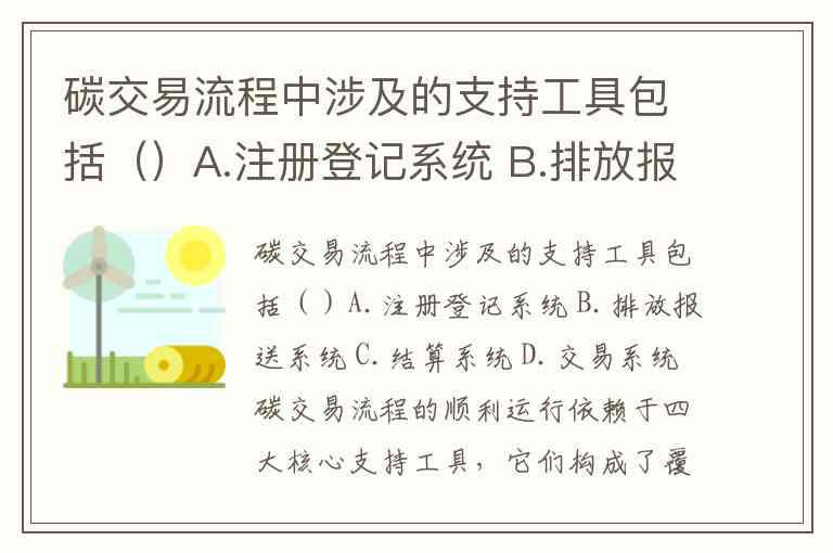 综上,碳交易流程的支持工具包括A.注册登记系统、B.排放报送系统、C.结算系统、D.交易系统,四者共同构成了全国碳市场的“数字骨骼”。