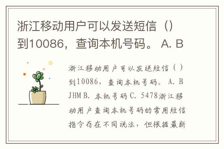 浙江移动用户可以发送短信()到10086,查询本机号码。 A. BJHM B. 本机号码 C. 5478