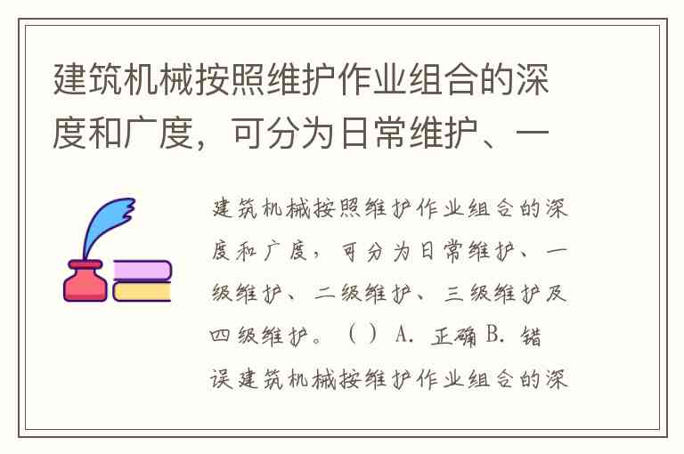 建筑机械按照维护作业组合的深度和广度,可分为日常维护、一级维护、二级维护、三级维护及四级维护。() A. 正确 B. 错误