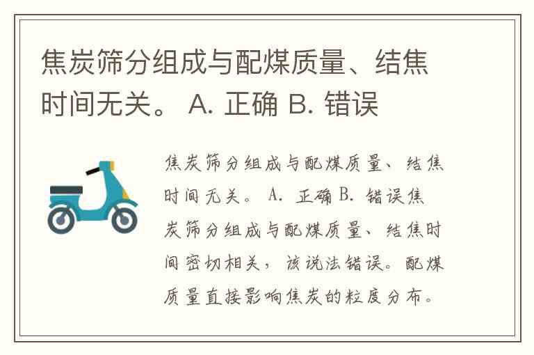 焦炭筛分组成与配煤质量、结焦时间无关。 A. 正确 B. 错误