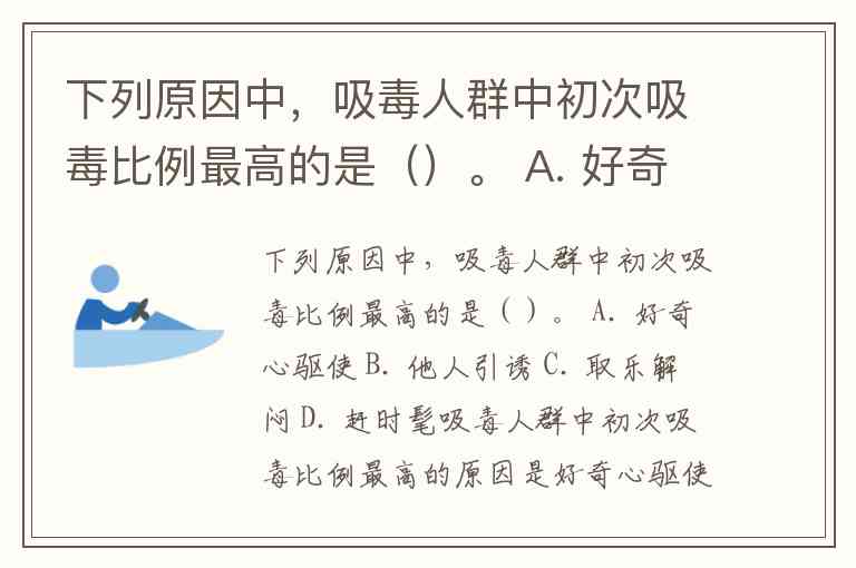 下列原因中,吸毒人群中初次吸毒比例最高的是()。 A. 好奇心驱使 B. 他人引诱 C. 取乐解闷 D. 赶时髦