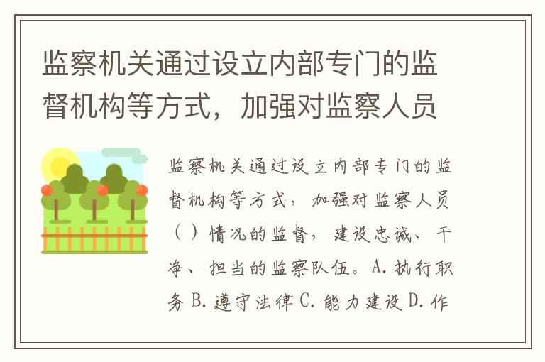 监察机关通过设立内部专门的监督机构等方式,加强对监察人员()情况的监督,建设忠诚、干净、担当的监察队伍。A.执行职务 B.遵守法律 C.能力建设 D.作风建设
