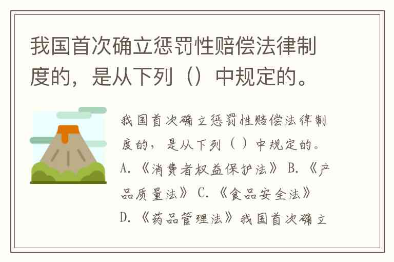我国首次确立惩罚性赔偿法律制度的,是从下列()中规定的。A.《消费者权益保护法》 B.《产品质量法》 C.《食品安全法》 D.《药品管理法》
