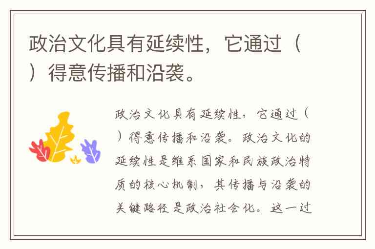 政治文化具有延续性,它通过()得意传播和沿袭。