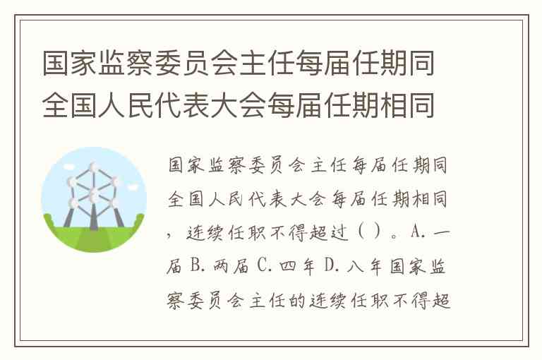 国家监察委员会主任每届任期同全国人民代表大会每届任期相同,连续任职不得超过()。A.一届 B.两届 C.四年 D.八年