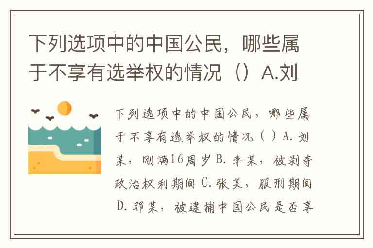 下列选项中的中国公民,哪些属于不享有选举权的情况()A.刘某,刚满16周岁 B.李某,被剥夺政治权利期间 C.张某,服刑期间 D.邓某,被逮捕