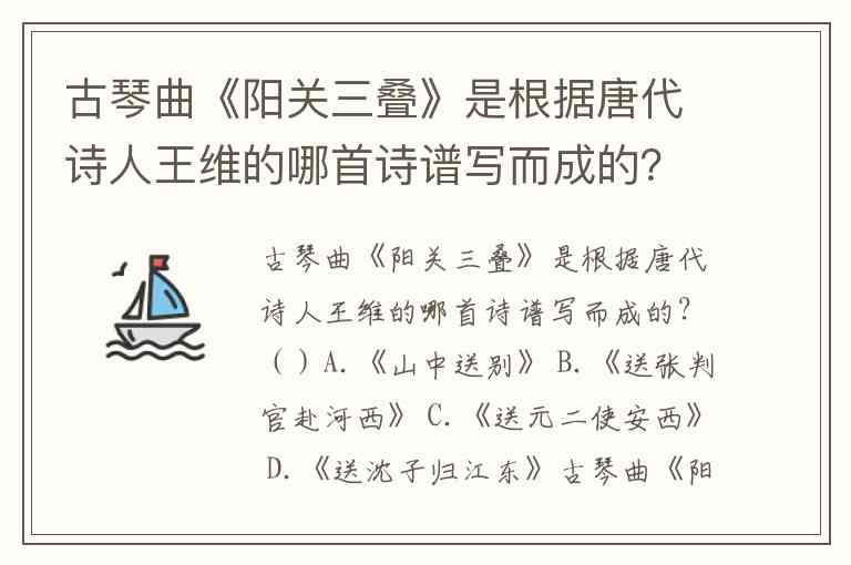 古琴曲《阳关三叠》是根据唐代诗人王维的哪首诗谱写而成的?()A.《山中送别》 B.《送张判官赴河西》 C.《送元二使安西》 D.《送沈子归江东》