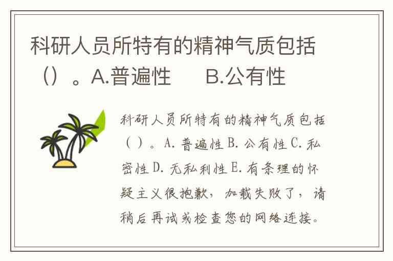 科研人员所特有的精神气质包括()。A.普遍性 B.公有性 C.私密性 D.无私利性 E.有条理的怀疑主义