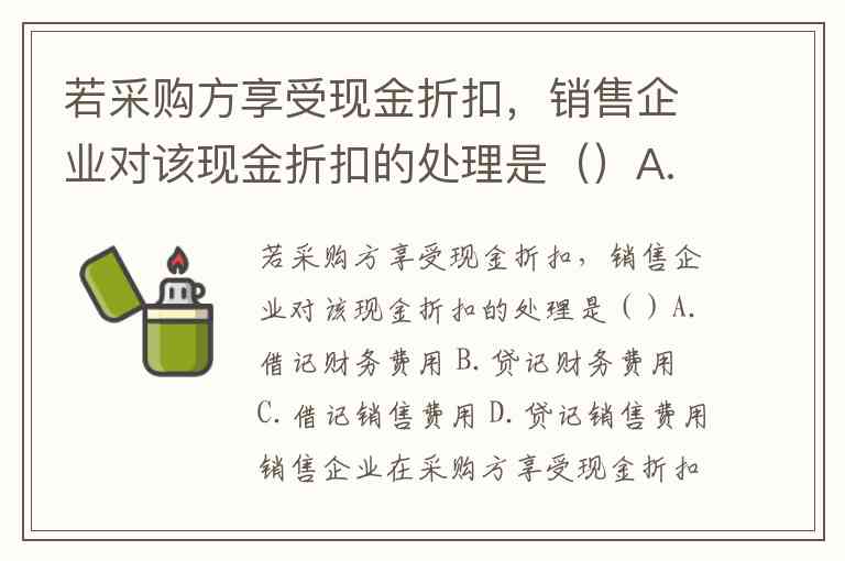 若采购方享受现金折扣,销售企业对该现金折扣的处理是()A.借记财务费用 B.贷记财务费用 C.借记销售费用 D.贷记销售费用