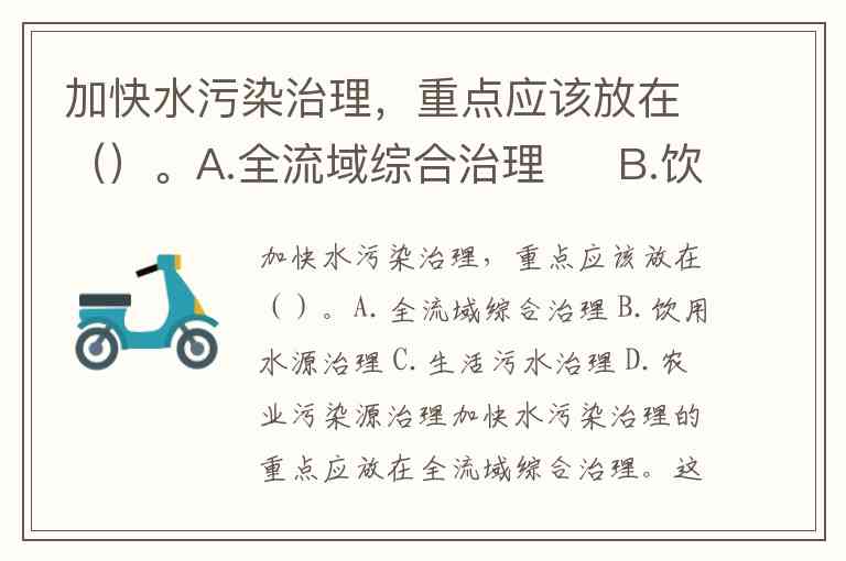 加快水污染治理,重点应该放在()。A.全流域综合治理 B.饮用水源治理 C.生活污水治理 D.农业污染源治理