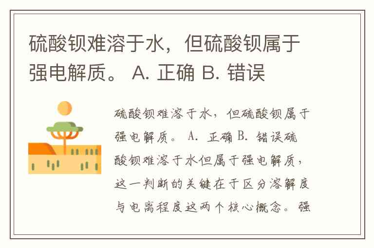 硫酸钡难溶于水,但硫酸钡属于强电解质。 A. 正确 B. 错误