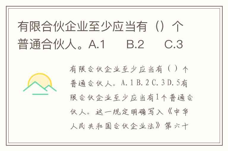 有限合伙企业至少应当有()个普通合伙人。A.1 B.2 C.3 D.5