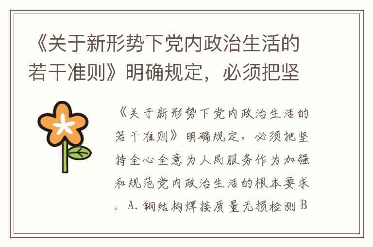 《关于新形势下党内政治生活的若干准则》明确规定,必须把坚持全心全意为人民服务作为加强和规范党内政治生活的根本要求。A.钢结构焊接质量无损检测 B.钢结构防腐及防火涂装检测 C.钢结构节点、机械连接用紧固标准件及高强度螺栓力学性能检测 D.钢筋保护层厚度检测