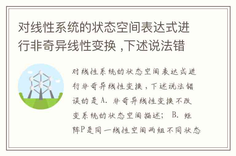 要判断关于线性系统状态空间表达式非奇异线性变换的错误说法,需先明确其核心性质:非奇异线性变换(通过可逆矩阵将状态向量变换为)会改变系统矩阵的具体形式,但保持系统的本质特性不变。以下是各选项分析: