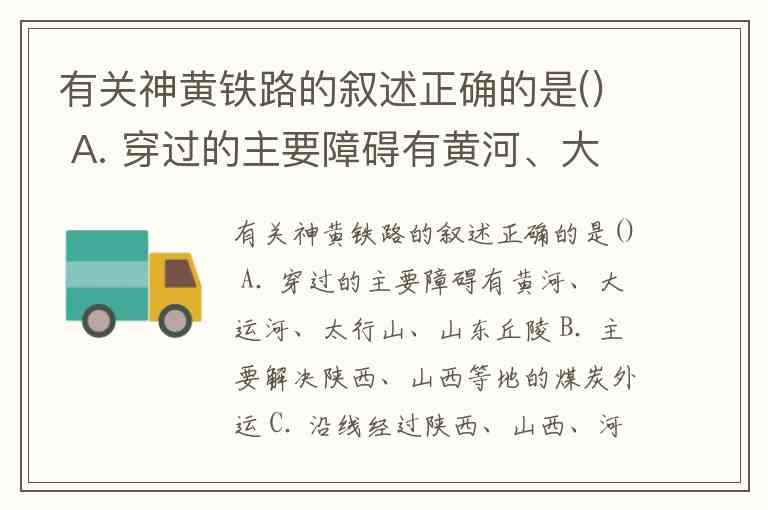 有关神黄铁路的叙述正确的是() A. 穿过的主要障碍有黄河、大运河、太行山、山东丘陵 B. 主要解决陕西、山西等地的煤炭外运 C. 沿线经过陕西、山西、河北、山东四省 D. 黄骅港位于天津市,濒临渤海