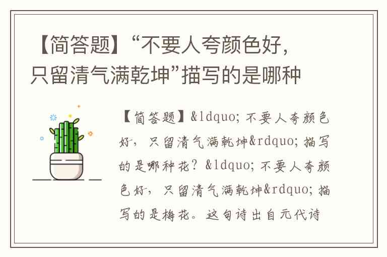 【简答题】“不要人夸颜色好,只留清气满乾坤”描写的是哪种花?