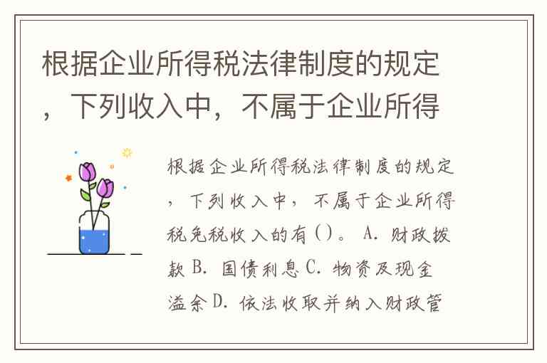 根据企业所得税法律制度的规定,下列收入中,不属于企业所得税免税收入的有( )。 A. 财政拨款 B. 国债利息 C. 物资及现金溢余 D. 依法收取并纳入财政管理的政府性基金