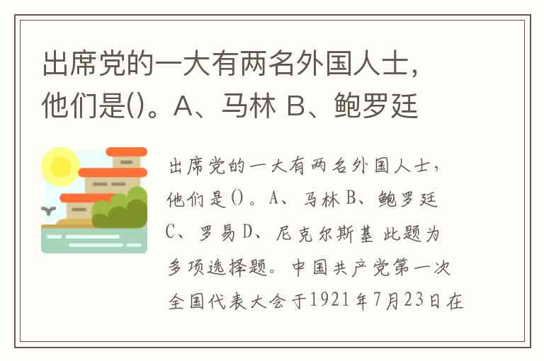 出席党的一大有两名外国人士,他们是()。A、马林 B、鲍罗廷 C、罗易 D、尼克尔斯基 此题为多项选择题。