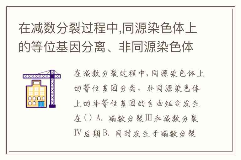 在减数分裂过程中,基因的分离与自由组合是遗传多样性的核心机制,其发生时期与染色体行为直接相关。同源染色体上的等位基因分离和非同源染色体上的非等位基因自由组合均发生于减数第一次分裂(减数分裂Ⅰ)后期。