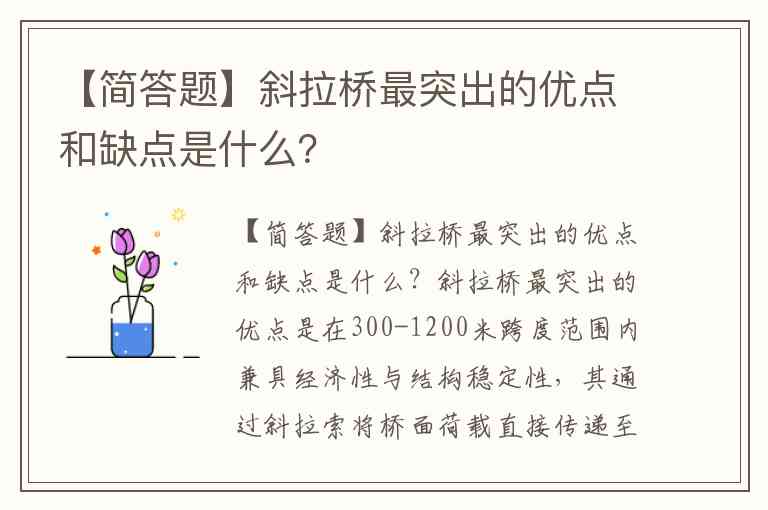 【简答题】斜拉桥最突出的优点和缺点是什么?