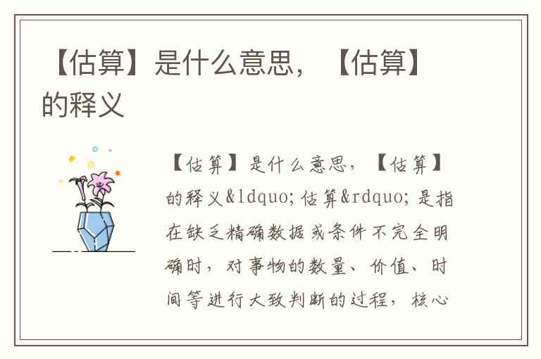 “估算”是指在缺乏精确数据或条件不完全明确时,对事物的数量、价值、时间等进行大致判断的过程,核心是“近似推算”而非精确计算。它像一把灵活的“快速尺”,在信息有限或时间紧迫时提供实用参考,比如买菜时估算总价、工程师预估项目成本,或是数学中对算式结果的大致推断。