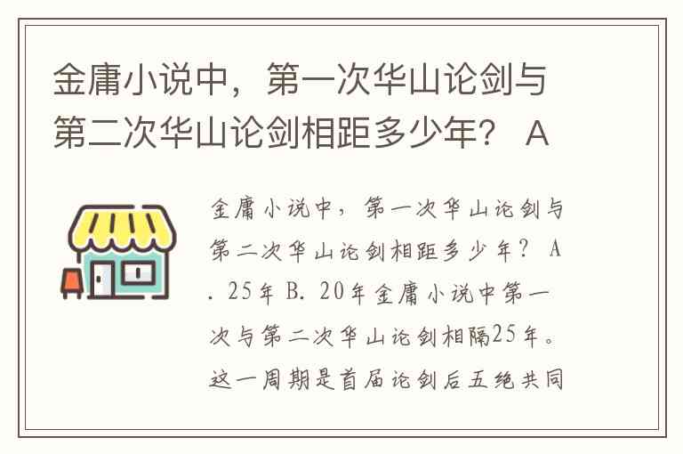 金庸小说中,第一次华山论剑与第二次华山论剑相距多少年? A. 25年 B. 20年