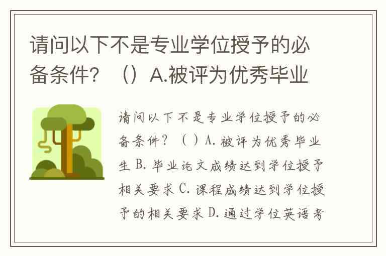 请问以下不是专业学位授予的必备条件?()A.被评为优秀毕业生 B.毕业论文成绩达到学位授予相关要求 C.课程成绩达到学位授予的相关要求 D.通过学位英语考试