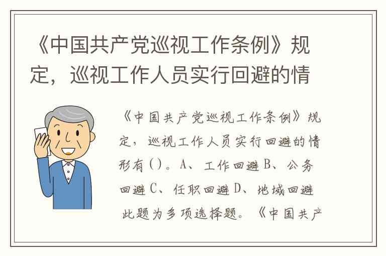 《中国共产党巡视工作条例》规定,巡视工作人员实行回避的情形有( )。A、工作回避 B、公务回避 C、任职回避 D、地域回避 此题为多项选择题。