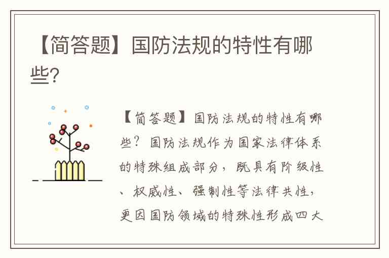 国防法规作为国家法律体系的特殊组成部分,既具有阶级性、权威性、强制性等法律共性,更因国防领域的特殊性形成四大鲜明个性:调整对象的军事性、公开程度的有限性、司法适用的优先性和处罚措施的严厉性,这些特性共同构成了国防法治的基石。