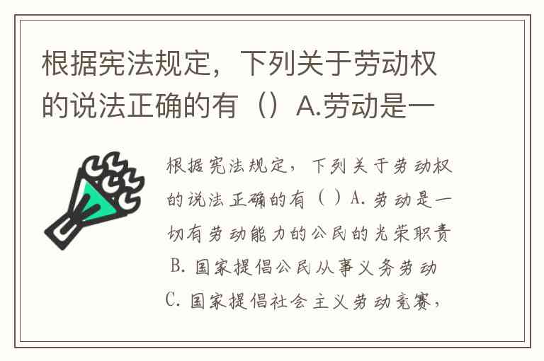 根据宪法规定,下列关于劳动权的说法正确的有()A.劳动是一切有劳动能力的公民的光荣职责 B.国家提倡公民从事义务劳动 C.国家提倡社会主义劳动竞赛,奖励劳动模范和先进工作者 D.国有企业和城乡集体经济组织的劳动者都应当以国家主人翁的态度对待自己的劳动