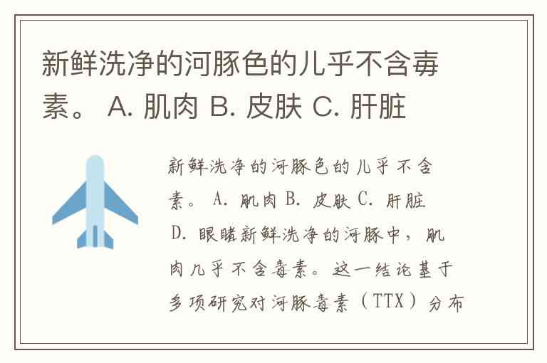新鲜洗净的河豚色的儿乎不含毐素。 A. 肌肉 B. 皮肤 C. 肝脏 D. 眼睹