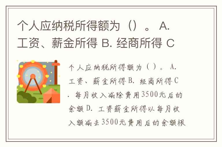 个人应纳税所得额为()。 A. 工资、薪金所得 B. 经商所得 C. 每月收入减除费用3500元后的余额 D. 工资薪金所得以每月收入额减去3500元费用后的余额