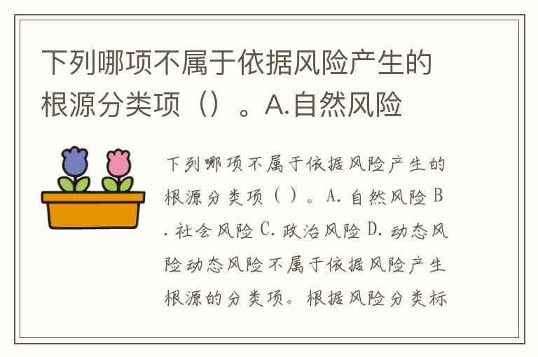 下列哪项不属于依据风险产生的根源分类项()。A.自然风险 B.社会风险 C.政治风险 D.动态风险